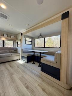 Floor plans may vary, but each unit is spacious and 20ft in length or greater. Each unit has a living, kitchen and dining area, a bedroom (queen bed), and bath. The living area is furnished has pullout furniture for additional sleeping options (linens available for this upon request only). Some units have bunk options as well. The kitchen has all appliances and essentials for preparing meals. Bedroom and bath linens are provided.