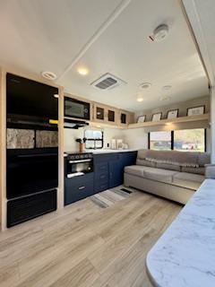 These Travel Trailers offer a great option for the overnight stay guest that want to experience camping but prefer modern convienences. Floor plans may vary, but each unit is spacious and 20ft in length or greater. Each unit has a living, kitchen and dining area, a bedroom (queen bed), and bath. The living area is furnished has pullout furniture for additional sleeping options (linens available for this upon request only). Some units have bunk options as well. The kitchen has all appliances and essentials for preparing meals. Bedroom and bath linens are provided.